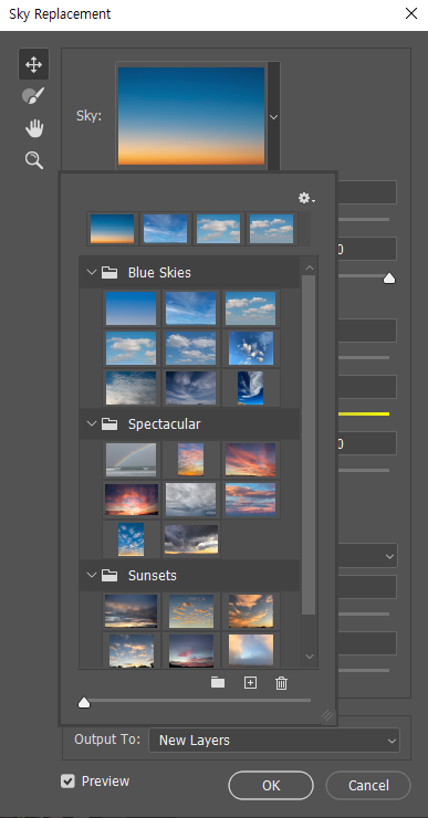 Sky 영역을 클릭하면 무수히 많은 하늘이 존재하는데요.